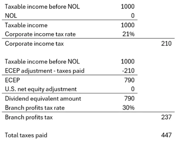 The effect of these two taxes is to create a worst-case Federal tax liability of 44.7% of the foreign corporation’s taxable income.