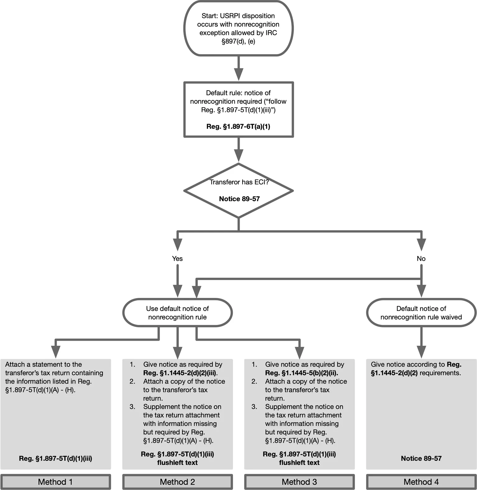 Here is a handy decision tree to show what kind of paperwork is required to make a nonrecognition provision work with a disposition of U.S. real estate by a nonresident or foreign corporation.